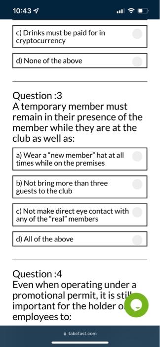 Solved If An Individual Orders An Alcoholic Beverage In A Private Club What Is The First Question The Server Should Ask